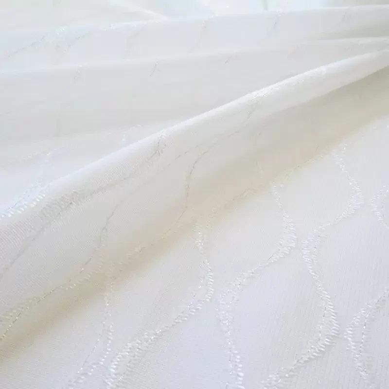 TEIJIN社の特殊繊維「エコリエ」を使用して遮熱、UVカット効果のある機能レースです。さらにミラー機能もあるのでプライバシー対策でお探しの方にもおすすめ。流れるような縦の波柄の中にはラメ糸も入っていて、揺らぎの変化が楽しめます。シンプルな柄なので、ナチュラル、モダン、アーバン、エレガンス、クラシック、カジュアルなど幅広いテイストに合わせやすく、家庭洗濯OK(ウォッシャブル)なのでお手入れも簡単。カラー:クリーンなホワイト色